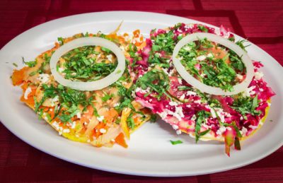 with vegetables, rice and handmade tortillas /