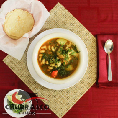 Sopa de res con vegetales, arroz y tortillas hechas en Churrasco Fusion