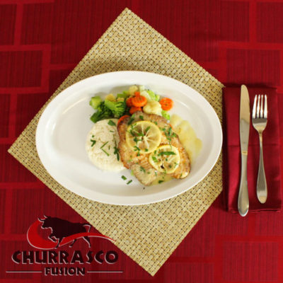 Servido con arroz blanco y vegetales cubierta con salsa de limón y mantequilla.
