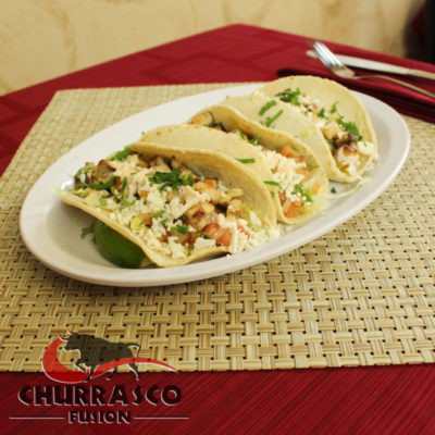 Servido con arroz blanco, frijoles, plátanos fritos, pico de gallo y tortillas hechas en Churrasco Fusion