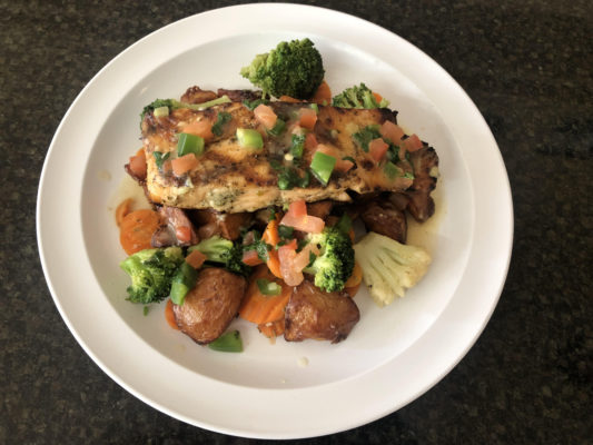 Served with white rice and vegetables topped with butter lemon sauce /